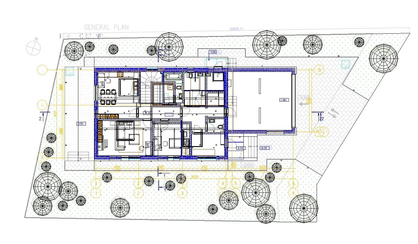 Modélisation des bâtiments et aménagements extérieurs à partir de plans.
